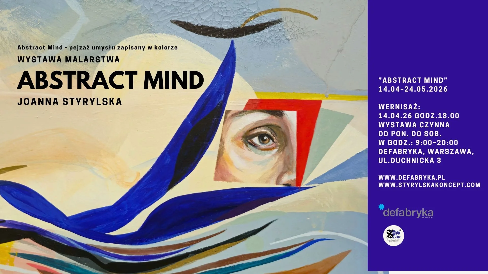 Zapraszamy na otwarcie wystawy malarstwa Joanny Styrylskiej, podczas której zaprezentowane zostaną najnowsze prace z cyklu Abstract Mind. To rozwijany od kilku lat projekt malarski, w którym artystka bada relacje między kolorem, przestrzenią obrazu i stanami wewnętrznymi.